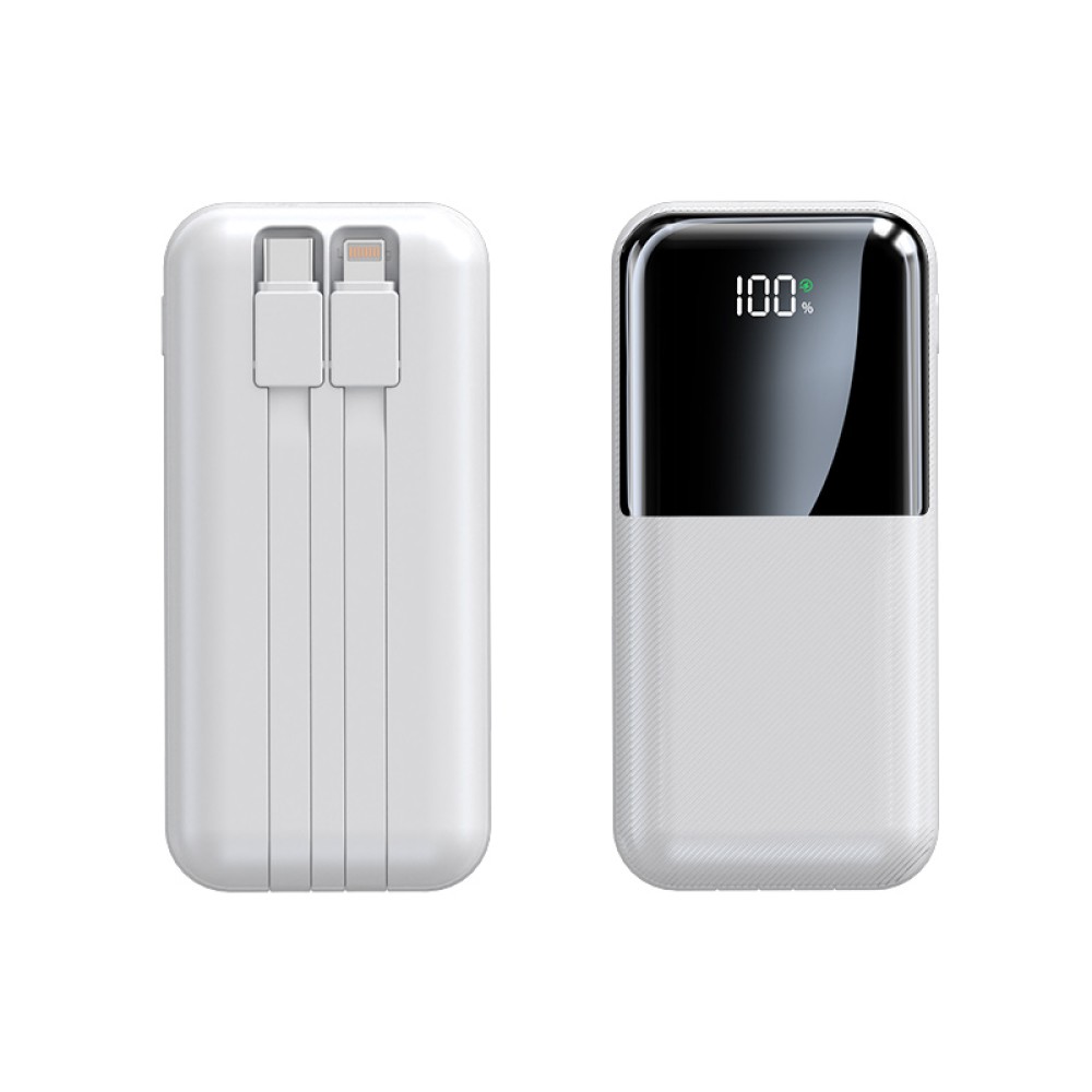 Внешний аккумулятор ёмкостью 10 000 мА·ч со встроенными кабелями и цифровым индикатором заряда. Удобен для повседневного использования и поездок — не требует дополнительных проводов. Быстрая зарядка PD доступна через порт USB-C; встроенные кабели работают в стандартном быстром режиме.
