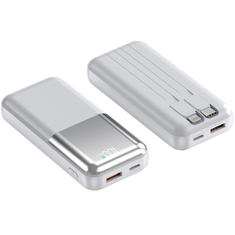 Внешний аккумулятор ёмкостью 10 000 мА·ч со встроенными кабелями и цифровым индикатором заряда. Удобен для повседневного использования и поездок — не требует дополнительных проводов. Быстрая зарядка PD доступна через порт USB-C; встроенные кабели работают в стандартном быстром режиме.